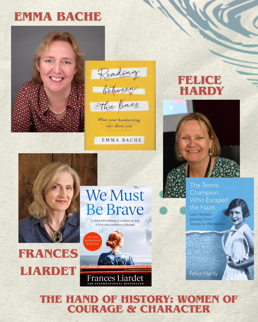 Join New York Times bestselling author Frances Liardet (We Must Be Brave) and historian Felice Hardy (The Tennis Champion Who Escaped the Nazis) with graphologist Emma Bach. Emma will analyze handwriting from WWII-era women—from historical figures in Felice’s book to those on the home front—to reveal their untold stories and connect them to the authors’ works.